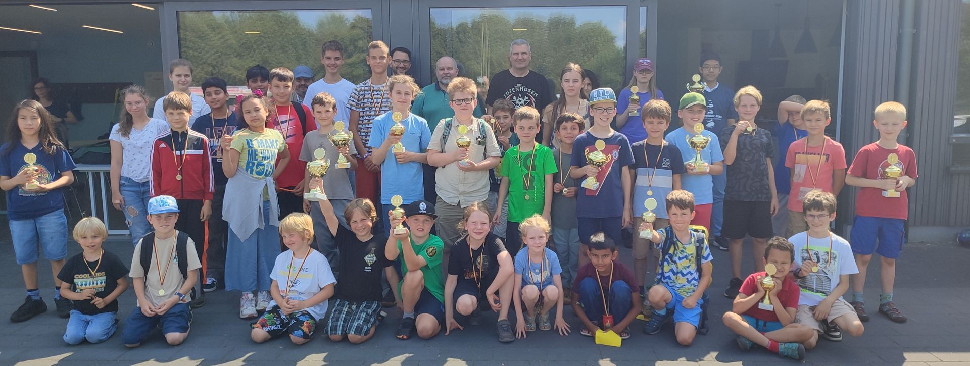 Für die Siegerehrung hatte sich der MTVE etwas besonderes einfallen lassen. Statt Urkunden bekam jeder Teilnehmer, der nicht mit einem Pokal geehrt wurde, eine schöne Medaille. Für die Erstplazierten gab es zusätzlich ein Schach-T-Shirt. Bezirksvertreter Marc Perry resümierte „es lief richtig gut!“ Der Aufwand hat sich gelohnt und die Resonanz von Teilnehmern und Begleitern motiviert zu einer Wiederholung im Sommer 2025.