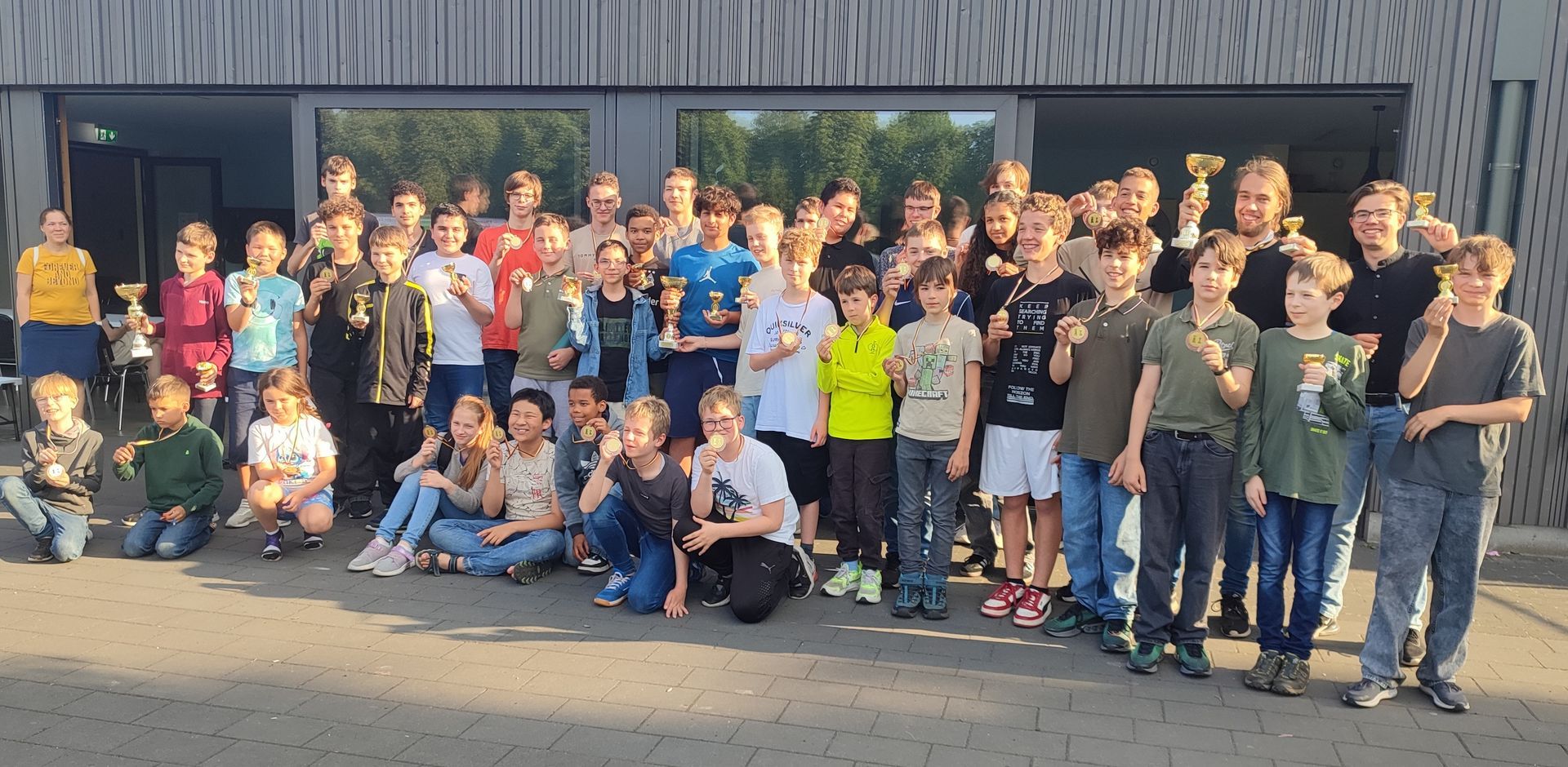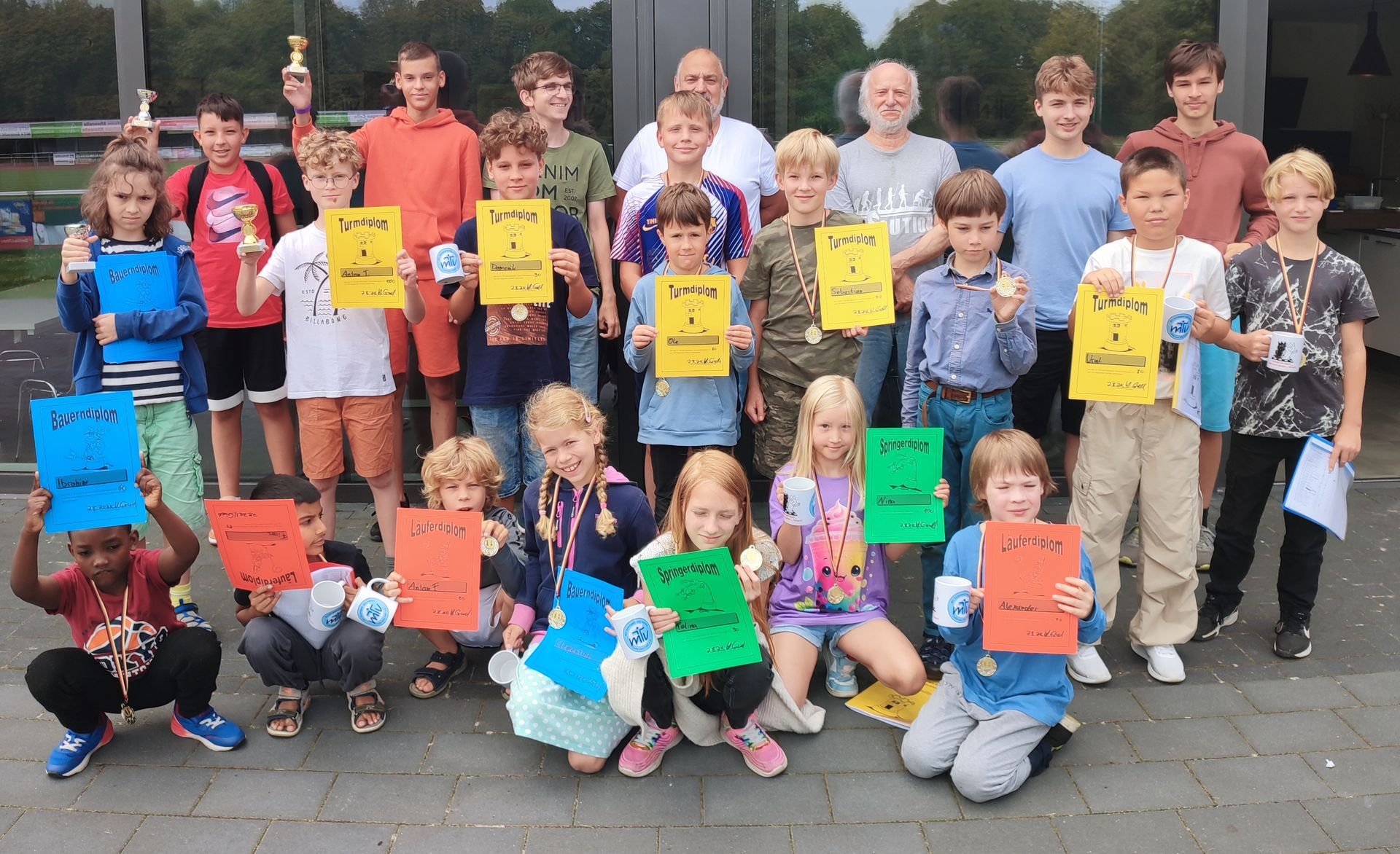 Für die Siegerehrung hatte sich der MTVE etwas besonderes einfallen lassen. Statt Urkunden bekam jeder Teilnehmer, der nicht mit einem Pokal geehrt wurde, eine schöne Medaille. Für die Erstplazierten gab es zusätzlich ein Schach-T-Shirt. Bezirksvertreter Marc Perry resümierte „es lief richtig gut!“ Der Aufwand hat sich gelohnt und die Resonanz von Teilnehmern und Begleitern motiviert zu einer Wiederholung im Sommer 2025.
