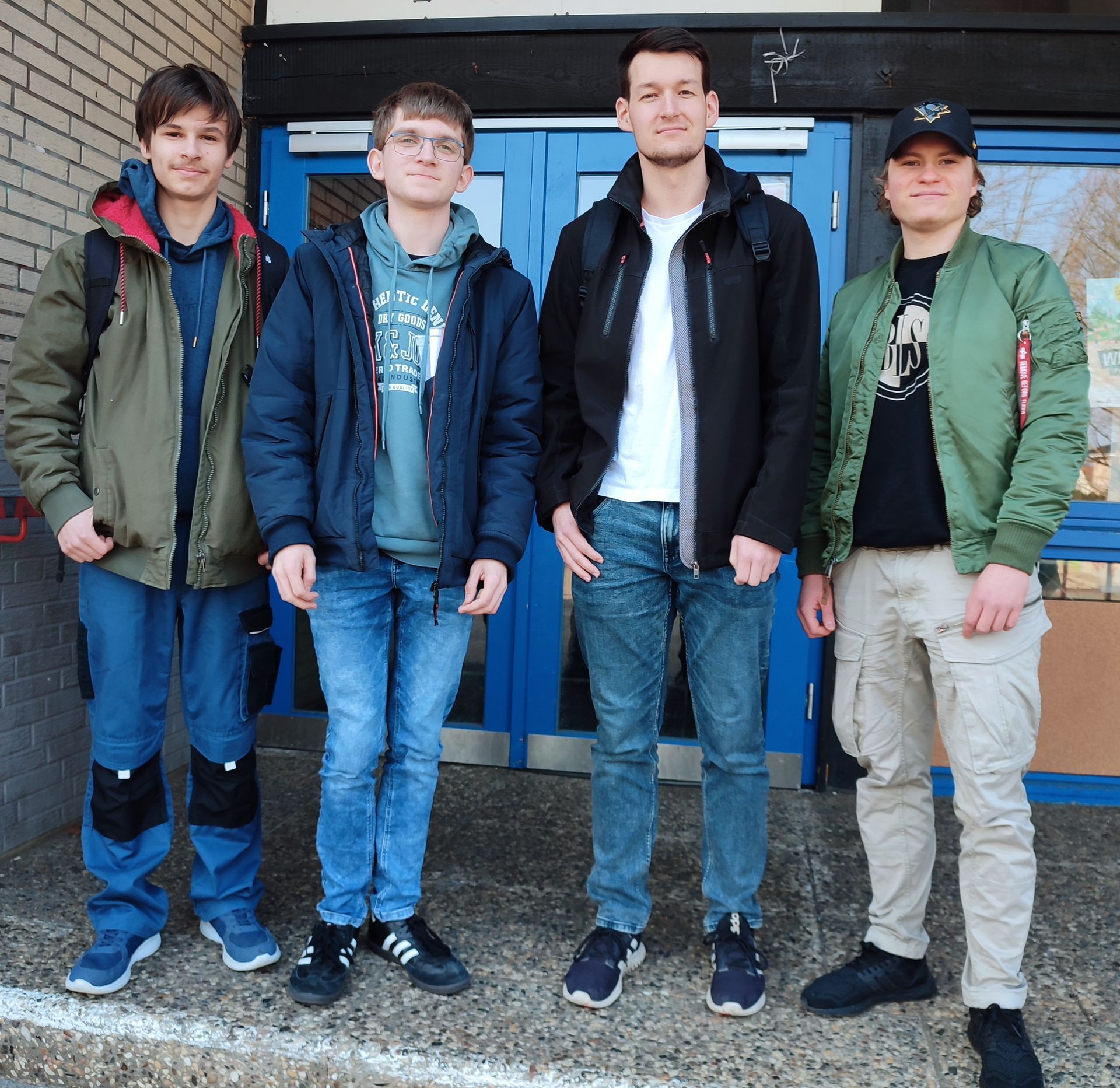 Vlnr. die erfolgreichen Jugendlichen des MTVE Noah Kutzner, Hannes Leon Grunwald, Moritz Kanzenbach und Dominik Trenkenschu vor dem Spiellokal in Winsen/Luhe, dem Jugendzentrum Egon.