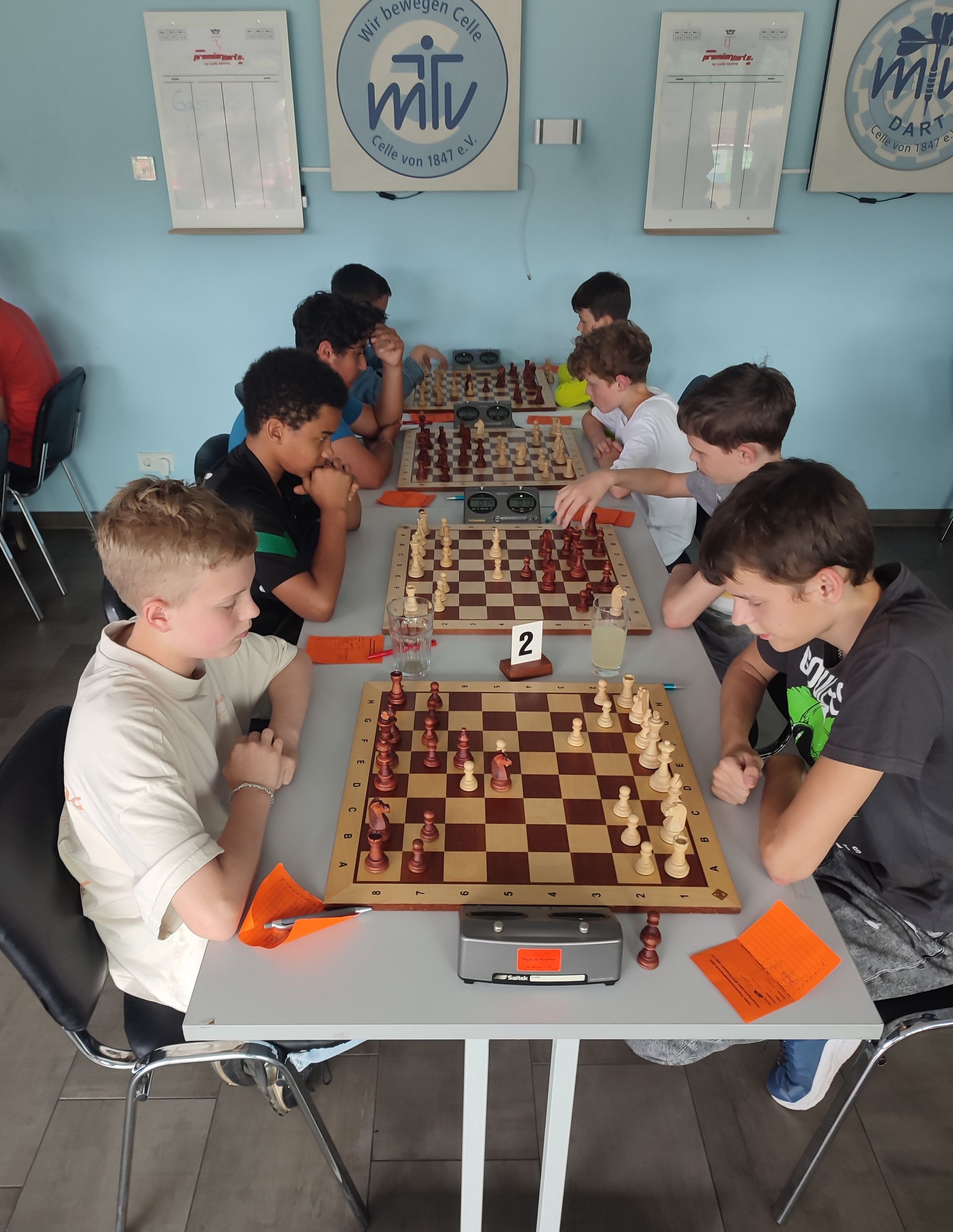 Das 5-tägige Ferien-Schachcamp in der ersten Ferienwoche beim MTV Eintracht Celle war mit 12 Teilnehmern im Alter von 8 bis 13 Jahren, die von den Sportassistenten Manfred Stammschroer, Jürgen Goretzki, Noah Kutzner und Jan Wedau und Übungsleiter Knut Weinreich in 5 Leistungsstufen für ein Schachdiplom trainiert wurden und ihren Trainingsfortschritt zum Abschluß bei einem Turnier zeigen konnten, wieder eine erlebnisreiche Woche.